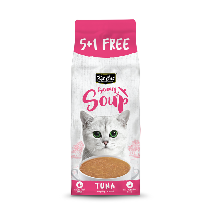 – Kit Cat Savoury Soup is crafted with your feline’s health in mind, free from thickening & gelling agents such as carrageenan gum.
